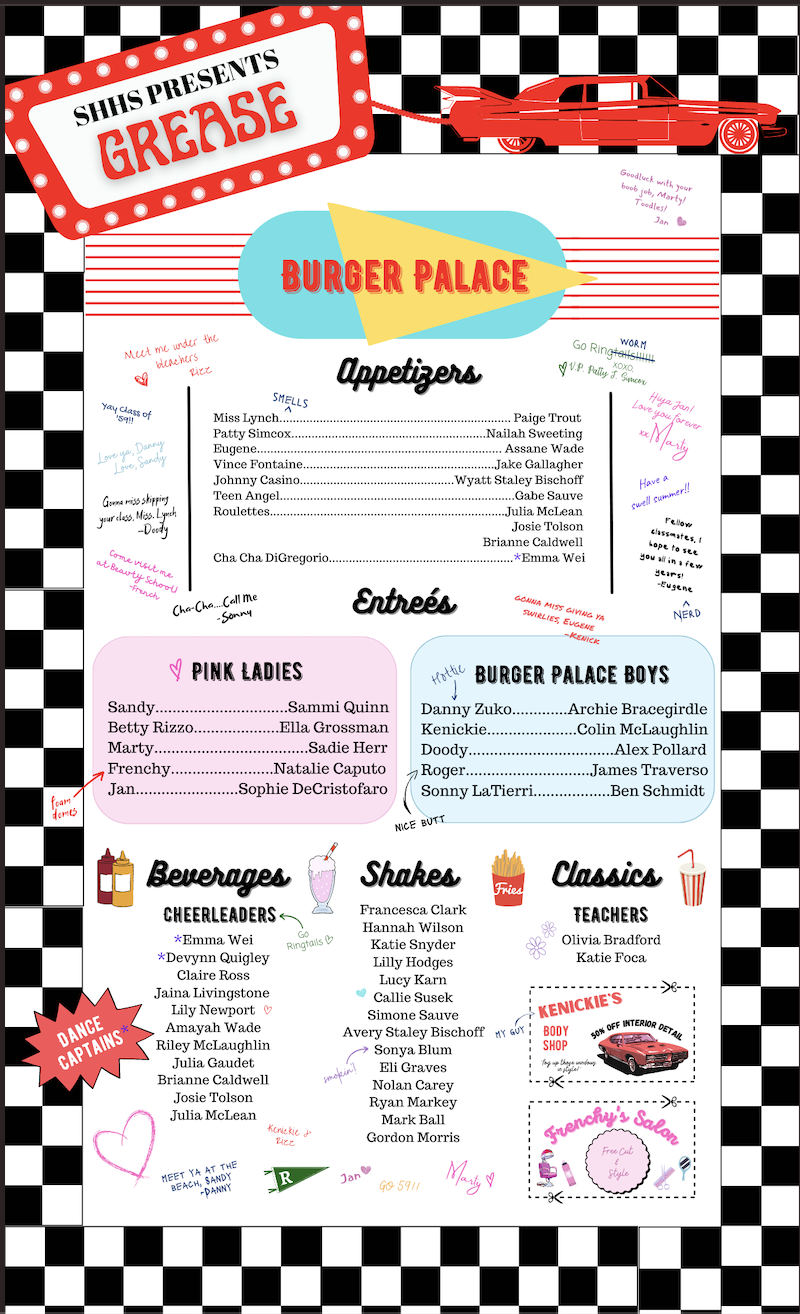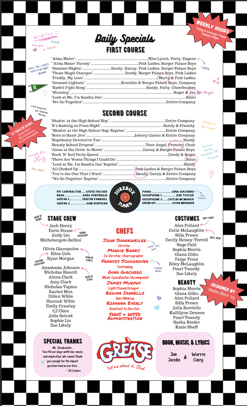 In 2023, I conceptualized and designed this 1950s diner menu-style program, which was ultimately laminated and distributed before each show.